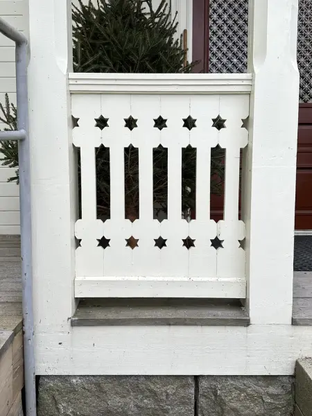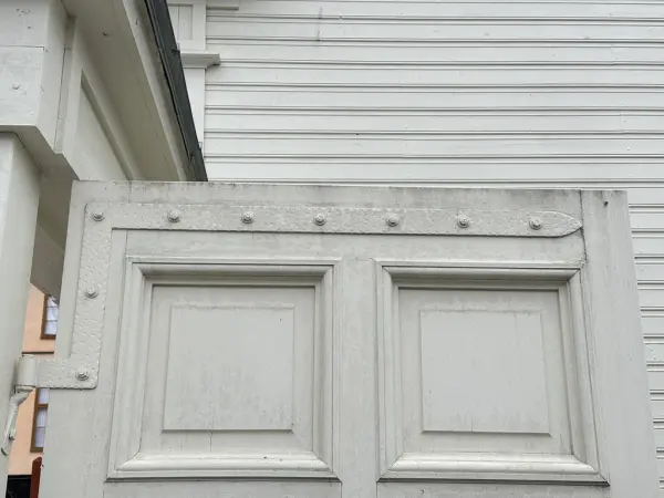 - BygningFarstun är Järnhandlarbostadens entré från gården. Rummet har fernissat brädgolv, väggar klädda i rosamålad pärlspont samt tak av dito målat i gråvitt. Ytterdörren är en dubbeldörr i björkimitation med fönster och dörrgaller i gjutjärn. Innerdörrarna mot butiken, vindstrappen, skrubben, salen, WC och köket är även de målade i gulaktig björkimitation. I rummet på ömse sidor om ytterdörren är monterat en radiator i gjutjärn, samt en elcentral med öppet proppskåp. (SKABYG.10101_101)