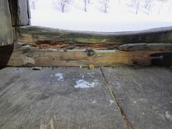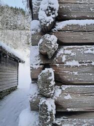 Tømmeret i hovedrommet i stabburet har same novform som den eldste delen av loftet frå Heggdal.
