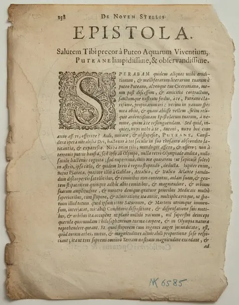 Subject Bokblad med latinsk skrift fra boka "Novem stellae circa Iovem, circa Saturnum sex, circa Martem nonnullae" av Antonio Reita.