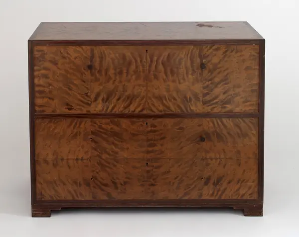 Kommoden er utført av Edvard Bertram Røhmen i Trondheim, antagelig 1910-1940.- KunstnerRøhmen, Edvard Bertram