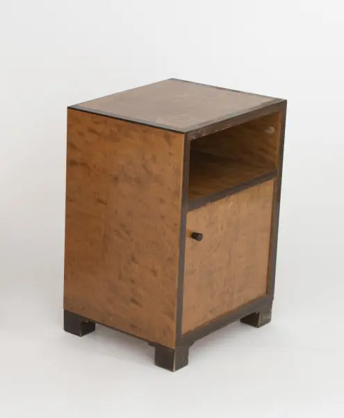 Nattbordet er utført av Edvard Bertram Røhmen i Trondheim, antagelig 1910-1940.- KunstnerRøhmen, Edvard Bertram
