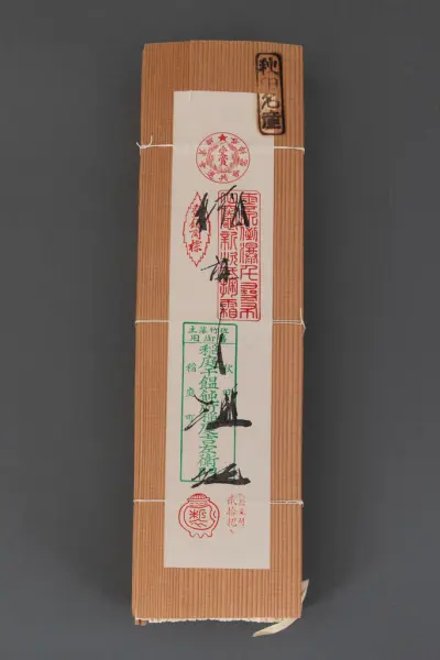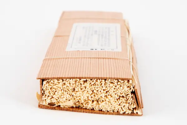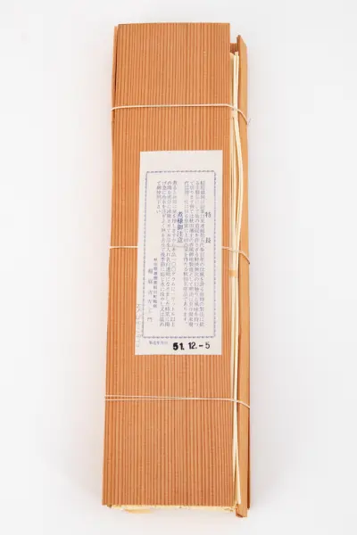 Pakningen med nudler er gitt i gave til museets samling i 1977 fra den grafiske designeren og forfatteren Hideyuki Oka, gjennom den Norske ambassade i Tokyo. Hideyuki Oka samlet på tradisjonell japansk emballasje. Skrinet med røkelsespinner kommer opprinnelig fra butikken Kyukyodo i Tokyo.- SamlingsskaperKrohn-Hansen, Thorvald