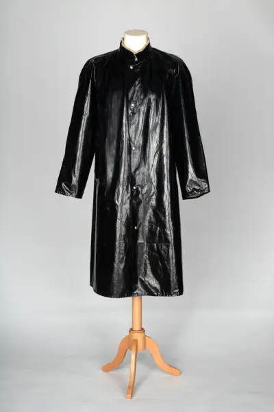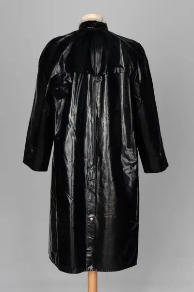 Produksjon - Produsert: 1950 - 1969 (Typen lakk/blank regnfrakk med fløyelskrage var vanlig på 1950- og 60-tallet )
