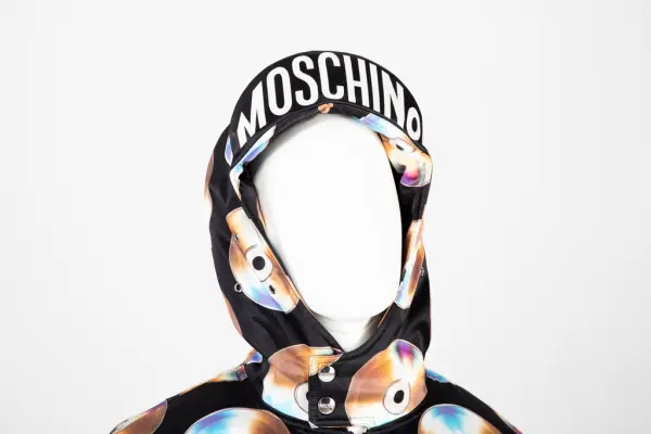 Fabrikkprodusert. På innvendig lapp står det at plagget er produsert i Kina, men importert via firma i Bogota, Colombia.- ProdusentMoschino