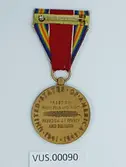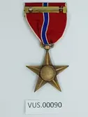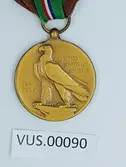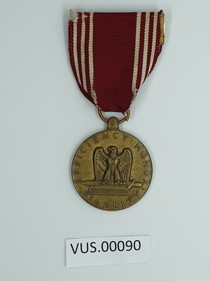 Medalje festet i rødt silkebånd med tre hvite smale striper på hver side, som representerer hæren i US. På medaljens fremside er en ørn med spredet vinger, som representerer årvå...