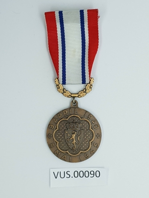 Medaljen er i bronse. På adversen er Norges riksvåpen med omskriften «9 APRIL 1940 * 8 MAI 1945 *». På reversen er kongeflagget, handelsflagget og orlogsflagget. Over disse en smal...