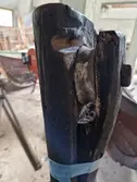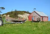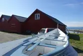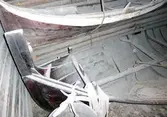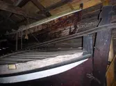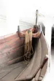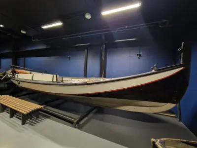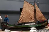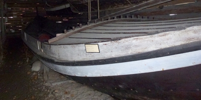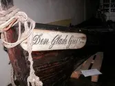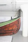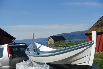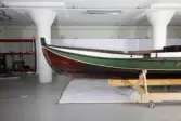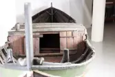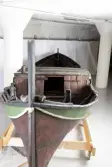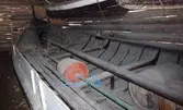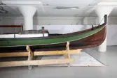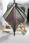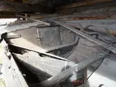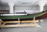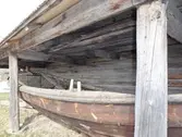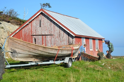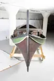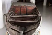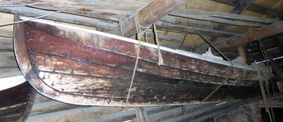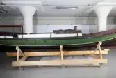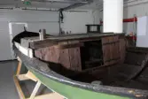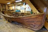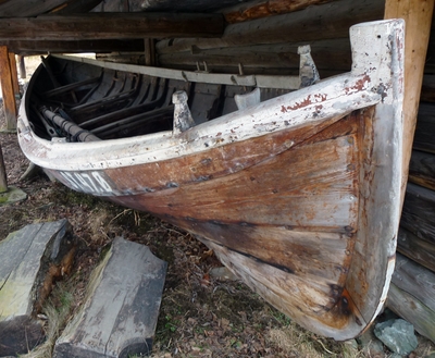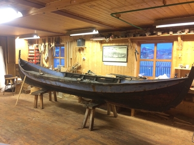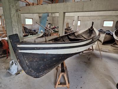 Em klinkbygd båt som er spiss i begge ender, såkalt åfjordsbåt. Den har 2 rom som er typisk for færingstørrelsen, den har 4 keiper, det er en bordrevne (sprekk) i den ene sida, nug...