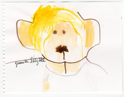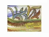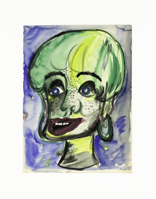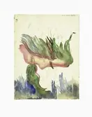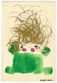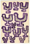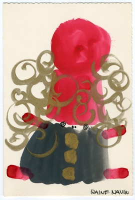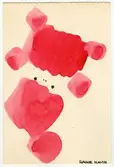 KLM 46157:330:1-3. Teckning, 3 stycken, papper, färg. 1: Motiv målat i grönt, gult, rött, svart, blått på vitt papper. Påskrift (bläck): Lustekurr! Signatur (bläck): P-son 50. 2: M...
