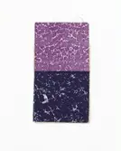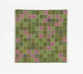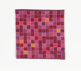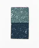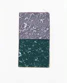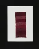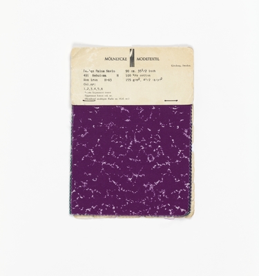 KLM 46157:248. Tygprov, häfte, textil, färg, papper. Tygprover i sju olika kulörer, rosa, lila, grön, blågrön, brun, svart, och vitt oregelbundet mönster. Fasthäftat vitt pappersom...