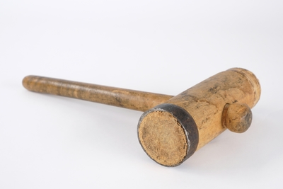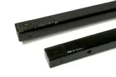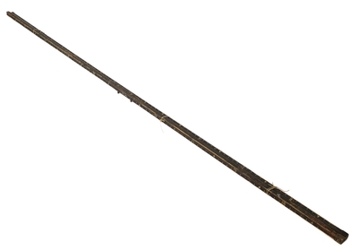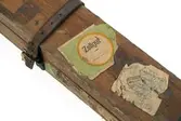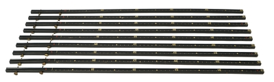 2 firkantede trestenger hvor den ene siden er konkav.På den konkave siden er det avtegnet lengdemål i fot.Den ene stangen er skjøtet med skruer. Stengene er buntet sammen med bomul...