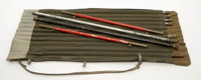 12 aluminiumsstenger konstruert for å kunne settes sammen.Disse ligger i hver sin lomme i en lerretssekk. Sekken er forsterket med skinn i bunn og topp. Toppen kan brettes rundt å...