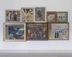 Asked to present work in dialogue with our collection, Tebus has made a thorough inventory, and selected and curated more than 500 works under 18 themes. Working in Stockholm, Tebus made the selection with the help of mobile photos from his visits to the museum. Frustrated with the quality of these reproductions, he began hand colouring black and white cut outs from the museum catalogues from 1945, 1987 and 1993. These 273 hand coloured images, which formed the basis of his selection and categories, are shown as an introduction, or table of contents, in the room titled Collection.