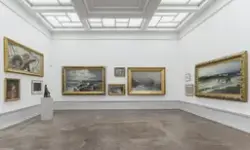 Some themes reflect the historical and geographic environment that shaped the collection: Fishing Stories, For the Pilgrims and several landscape categories for example. Others, such as Food in Context and Interiors and How to Use them seem to look past the motifs and genres of the art works. By directing our attention to seemingly arbitrary elements they present unexpected similarities and connections. Taken together Tebus's categories and juxtapositions show the diversity, high and low, not only of the collection but of the artistic impulse as such.
