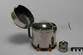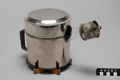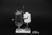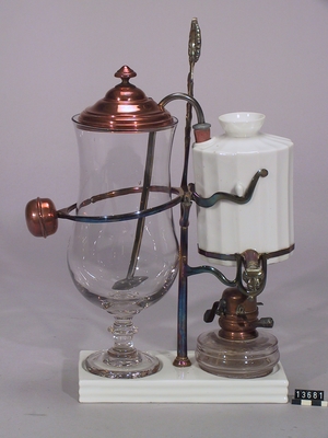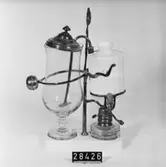 Kaffebryggningsapparat med automatisk släckning av spritlampan då brygden är färdig. Bestående av sju delar. Malet kaffe läggs i den stora glasbehållaren och vatten fylls i porslin...