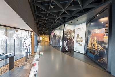 Fra museets samlinger presenteres navigasjonsutstyr og kanonkuler, arbeidsverktøy og personlige effekter, klær og suvenirer. Sammen med malerier, fotografier, dagbøker, brev og animasjoner kommer publikum tett på dramatikk og hverdag til sjøs.