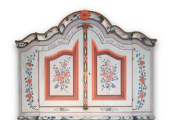 Allting förfärdigat av den sagolikt skicklige målaren och snickaren Jöns Månsson (1769-1847). Från Jämtland, men ingift i Forsa, Hälsingland med Cecilia Andersdotter. Hjulmakarens dotter i byn Böle. Jöns blev en torpare som ofta arbetade med sina skåp på vårvintern, enligt arbetets årsrytm.