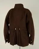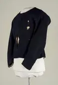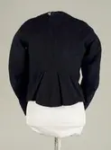 Bol av seks deler. Rett ryggsøm, buete panelsømmer, buet sidesøm, rett forkant. Dobbeltknept med seks knapphull i hver front. Fem knapper og merke etter en i venstre side, merke ...