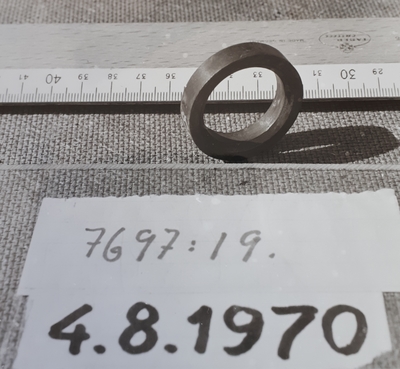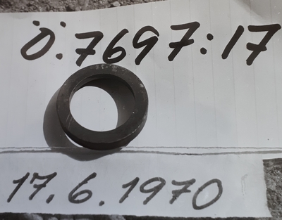 Tätring av stål till 24 cms k. M/ 1869, till främre tätlaget. Plan med fläns och hål för tätringsskruven. Märkt:?900.? Diam: 262- 145 mm Flänshöjd: 24 mm Modellkammaren i Sto...