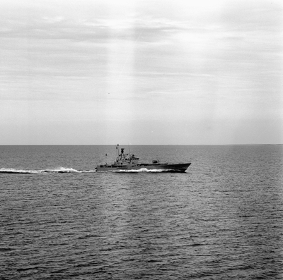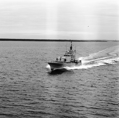 Metallskylt med inskription i relief. Texten på skylten lyder: Karlskronavarvet AB KV NR 378 1976. I mitten, dvs. texten KV, utformad som Karlskronavarvets logotype. Hål borrat i v...