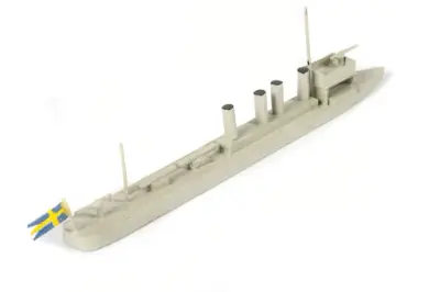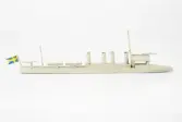 Fartygsdiorama föreställande pansarskepp av Äran-typ och jagaren Magne. Äran-typen har grått skrov, ljusbrunt däck, bryggor med mera i grått. Två skorstenar, livbåtar, artilleripjä...