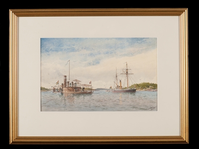 Silverplåt märkt: "Till C. F. Asker från H.G. Lagercrantz 19 14/5 17." Förgylld ram