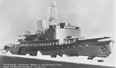 (Public Domain-märke (PDM)) THULE (1951) icon--add Add to folder icon--add Add to folder Remove from folder social--more Share About the object Name THULE Name THULE General subject term Icebreaker , Ship Length 57 meter (m) Width 15 meter (m) Djupgående 4,9 meter (m) Deplacement 1.930/2.200 ton Fart 15 knop (kn) Authority https://kulturnav.org/9bbbeae9-8d05-4216-8409-654fe31d4bae Type Naval vessel History Sjösatt: 1951 Örlogsvarvet i Karlskrona (Varv)Utrangerat: 1988 531 objects Details Grid Images Details V5709 V14070 Isbrytare Thule i oscarsdockan Asbetsarbete ombord på isbrytare Thule Isbrytaren Thule från ÖVK. Thules sjösättning Thule i sjön Fartygsmodell Modell av isbrytaren THULE. Skala 1:100. Thule stereobild på propeller Thule stereobild på propeller Thule stereobild på propeller V6950 V6938 V6940 V6941 V6942 V6943 V6944 V6946 V6947 References https://digitaltmuseum.org/9bbbeae9-8d05-4216-8409-654fe31d4bae Hofsten, Gustaf von & Waernberg, Jan (2003). Örlogsfartyg: svenska maskindrivna fartyg under tretungad flagg s. 306Hofsten, Gustaf von & Waernberg, Jan (2003). Örlogsfartyg: svenska maskindrivna fartyg under tretungad flagg. Stockholm: Svenskt militärhistoriskt bibl. i samarbete med Marinlitteratur License information License Inga rättigheter reserverade (CC0) Metadata Part of dataset Fartyg Owner of dataset Statens maritima och transporthistoriska museer Provider Date published November 18, 2015 Date updated February 13, 2026 UUID 9bbbeae9-8d05-4216-8409-654fe31d4bae