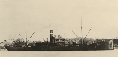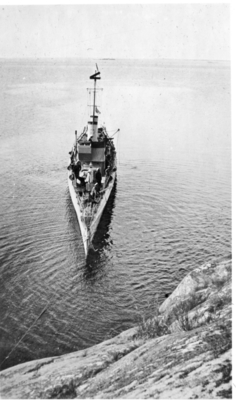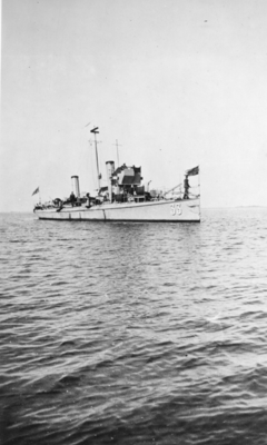 Fotografi inom glas och ram. Ramen av trä, svart. Visar två foton av vedettbåten Virgo. Byggd som 1:a klass torpedbåt 1902, sedermera ombyggd till vedettbåt.