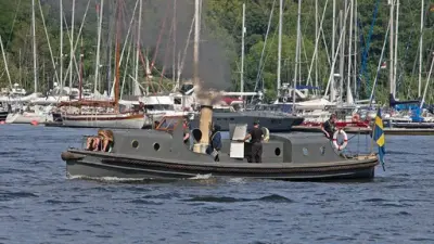 Pansarskeppet Wasas ångslup, ångslup n:o 45 (flottans beteckning). Spetsgattad med stålskrov. Komplett med ångpanna och compoundmaskin. Längd 14,9 meter. Bredd 2,65 meter. Slupen ä...