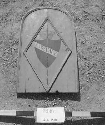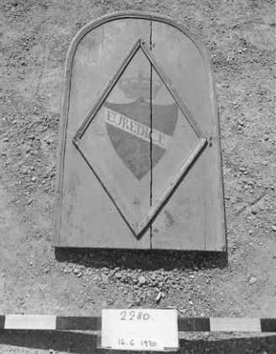 Rektangulärt med övre ändan halvcirkelformad, grönmålad. På densamma, en målad blå sköld med gul, och röd och blå kungl. krona över samt namnet "EURIDICE" på ett vitt band diagona...