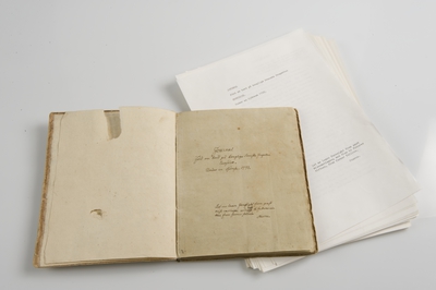 Medaljong, antikiserat kvinnohuvud, enligt uppgift föreställande grevinnan Ehrenswärds huvud. Röd på blågrön botten med oval röd kant.