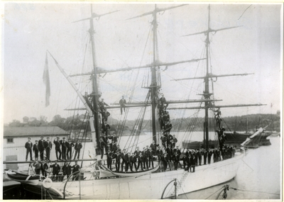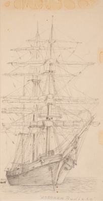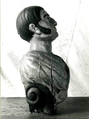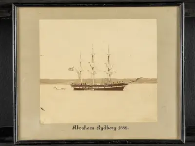 Galjonsbild av trä, ABRAHAM RYDBERG (I). Vid restaurering 1936 framtogs originalförgyllningen. Tidigare var galjonsfiguren vitmålad med svart hår, polisonger och ögonbryn.