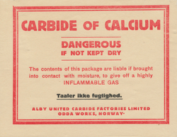 Karbiden løyser seg fullstendig opp etter å ha vore utsett for fukt frå lufta i eit par veker.
