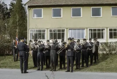 Forsvarsminister Hauge erklærte det nye skolebygget for åpnet og uttalte blant annet i den anledning at det var utmerket at den militære utdannelse av spesialister kom soldaten også sivilt til gode.