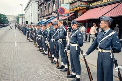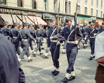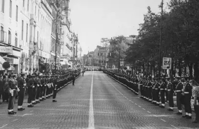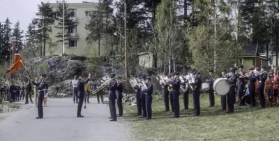 Det var virkelig fest over innvielseshøytideligheten; den store skoleavdelingen stilte på den ny-opparbeidede idrettsplassen like nedenfor "Radarbygget" med sin fane og med et aldeles ypperlig musikkkorps dannet av skolens elever på høyre fløy. Generalløytnant Lambrechts inspiserte avdelingen hvorefter den masjerte forbi med fanen og musikken i spissen. Tilstede ved paraden var blandt annet Flyvåpenets nestkommanderende, generalmajor E. Tufte Johnsen, sjefen for Luftkommando Østlandet generalmajor H. Jørgensen, Oberstene Nybø, K. Østby, J. Høyer og A. Hagemann, distriksingeniøren oberstløytnant Ø.B. Stadheim og som representant for Marinen, sambandsinspektøren, lorlogskaptein Bjarne Christiansen.