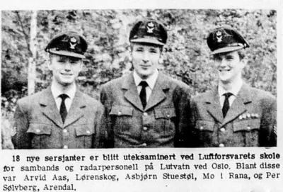 47 Befalselever kunne torsdag trekke i sersjantuniform etter å ha mottatt sine vidnemål ved Luftforsvarets befalskole for sambands- og radarpersonell ved Lutvatn i oslo. Sersajantene begynte utdannelsen i september 1967 og skal i 3 år gjøre tjeneste som spesialteknikere ved Luftforsvarets stasjoner.