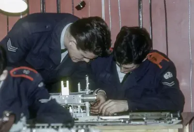Siden midten av 1950 årene gikk utviklingen av spesialiseringen svært gradvis, og reflekterte kompromisset mellom ønsket om ikke å utdype spesialiseringen for mye på den ene siden og på den andre siden det presset som kom av den kolossale utviklingen av anvendelse av elektronikken og kompleksiteten av utstyret. Stort sett har spesialiseringen tvunget seg fram, det ble to typer av radarspesialister, 2 typer av flyradio/radar spesialister og 2 typer av elektronisk linktrener-spesialister. Dels kom dette av hensynet til den praktiske anvendelsen av teknikerne, dels kom dette av at man hadde en begrenset tid til disposisjon for treningen av teknikerne. Kompeksiteten har stadig presset på for å øke treningslengden og tangerte i slutten av 1950 årene 21 måneder.