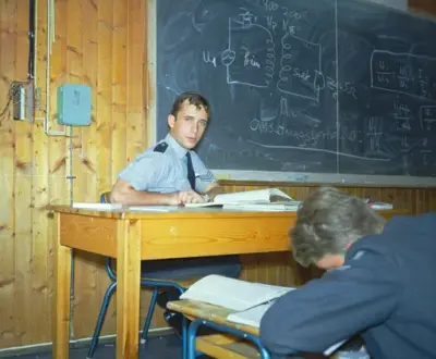 Og skolesjefen, major Nicolaysen, sa det samme og han tilføyde blant annet i sin åpningstale av det nye skolebygg, at skolen i grunnen ble startet i Canada, og satt i gang igjen i 1945 her hjemme. Oppgaven er å skaffe Luftforsvaret føsteklasses sambandsfolk. Det er meget nytt som må læres og derfor tar det tid å utdanne en fagmann. Men når han er ferdig har han også en utdannelse som kvalifiserer ikke bare som soldat, men også som sivil fagmann på sitt spesielle tekniske område. Når det gjelder utdannelsen går teori hånd i hånd med praksis. På den måte får man elevene til å holde faglige mål.