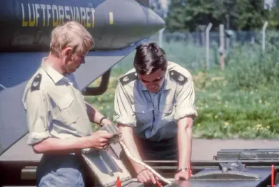 - Vi har en komite som allerede har sitter sammen i flere måneder for å planlegge en fellesutdannelse av danske og norske aspiranter. Det er nokså nærliggende at f.eks. teknikere og flygere fra de to land utdannes sammen, og vi har forsøksvis et slikt kull i gang ved vår MTU (Mobil Training Unit) på Sola. Imidlertid må vi ha for øye det karriereprogram som vi heretter skal verve personell til. Det er således viktig at det blir kontinuitet i rekrutteringen. I dag har vi 600 mannskaper på forskjellige kurser i utlandet. Når vi om et år får kapasitet til å klare det vesentlige av utdannelsen her hjemme, må vi ha det fornødne mannskap. -