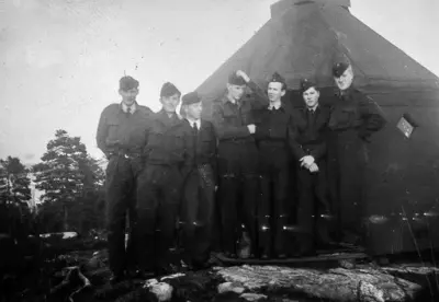 Fra Lutvann gikk turen til Kjeller. Det er vel nu i omkring 30 år at Kjeller har ivaretatt Luftforsvarets tekniske tjeneste. Med avbrytelser under okkupasjonen - selvsagt. Etter en beskjeden begynnelse oppe på Sagene flyttet man over til Kjeller, og arbeidet ble satt i gang med omkring 30 mann. I parantes kan nevnes at flere av disse ennu er i arbeid, som meget dyktige spesialarbeidere.