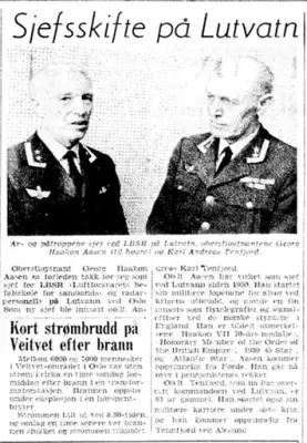 Oblt. Georg Haakon Aasen sa forleden takk for seg som sjef for LBSR (Luftforsvarets befalskole for sambands- og Radarpersonell) på Lutvatn i Oslo. Som ny sjef ble innsatt oblt. Andreas Karl Tenfjord.