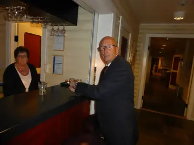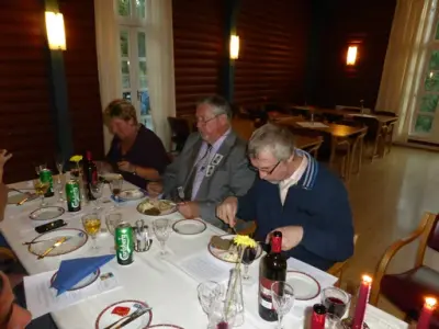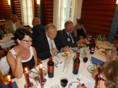 Vi ble møtt med en liten velkomstdrink. Deretter var det buffet med kalde og varme retter. Øl eller vin til de som ville ha dette og mineralvann til resten. Baren var oppe til 24 og alle fikk hilst og pratet litt med elever de kanskje ikke hadde sett på nærmere 50 år. De som har gitt lyd fra seg har alle vært veldig fornøyd med arrangementet.