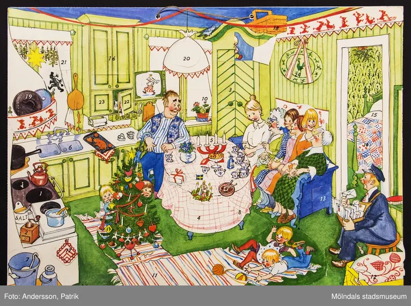 I Lucköppning får du ta del av museets populära samling med adventskalendrar. En nostalgiframkallande kavalkad från 1940- till 1970-talet. Här hittar du välkända illustrationer som väcker minnen – allt från Teskedsgumman och Trolltider till Herkules Jonssons storverk.