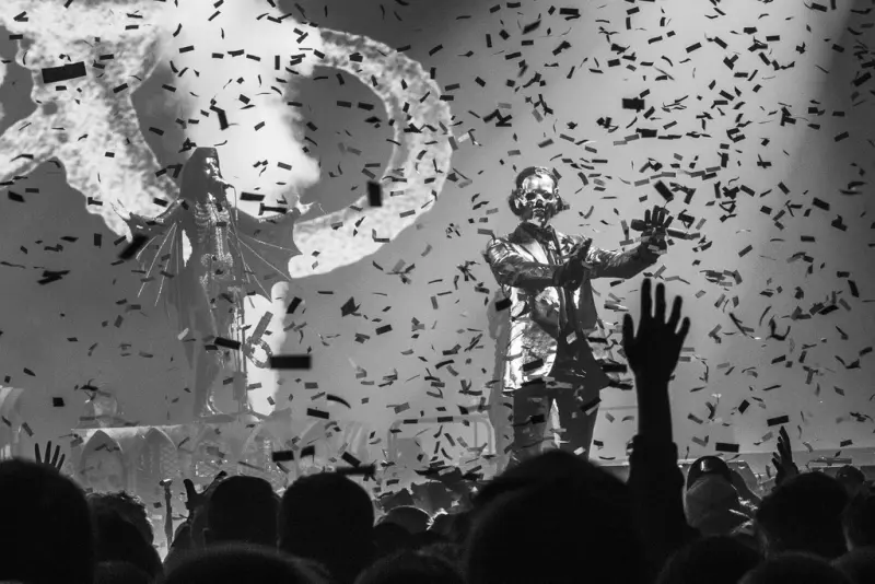 Framåt slutet av konserten, när konfettin – den så kallade ”Mummy dust” – skjuts ut över publiken, då jublar Sandrine när hon lyckas fånga en sedel. För henne är det ett minne att ta med hem. För vissa är det ett återseende, för andra är det första gången de ser bandet. Spelningen i Linköping är både en del av en världsturné och en lokal händelse. Ghost är ett globalt band, men den här kvällen är de ett Linköpingsband.