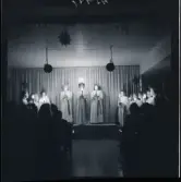 Kyrkan och även nykterhetsrörelsen firade från början inte Lucia, men man upptäckte efterhand att man kunde förhindra fest och bus genom att ta in firandet i sina lokaler. Då togs alkoholen bort och det serverade istället kaffe med dopp.