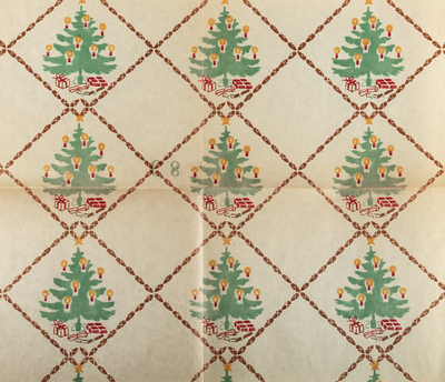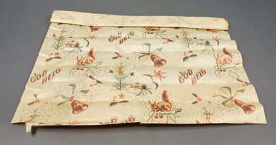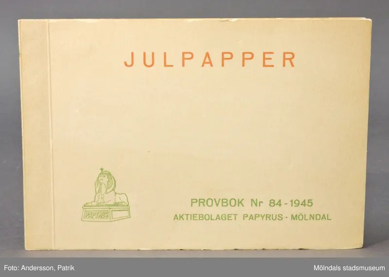 På Mölndals stadsmuseum finns ett flertal provböcker som innehåller bitar av tryckta, flerfärgade julpapper.