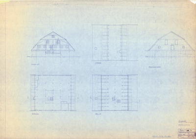 2 st. relationsritningar till Kranboden. Fasad, planer o. sektion. ÖVK Byggnadsdepartementet 25/5 1956 E.W.Öberg. Kopior på papper.