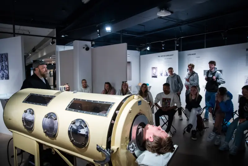 Det vil også være anledning for en elev å prøve å ligge i en jernlunge hvis tiden tillater dette.