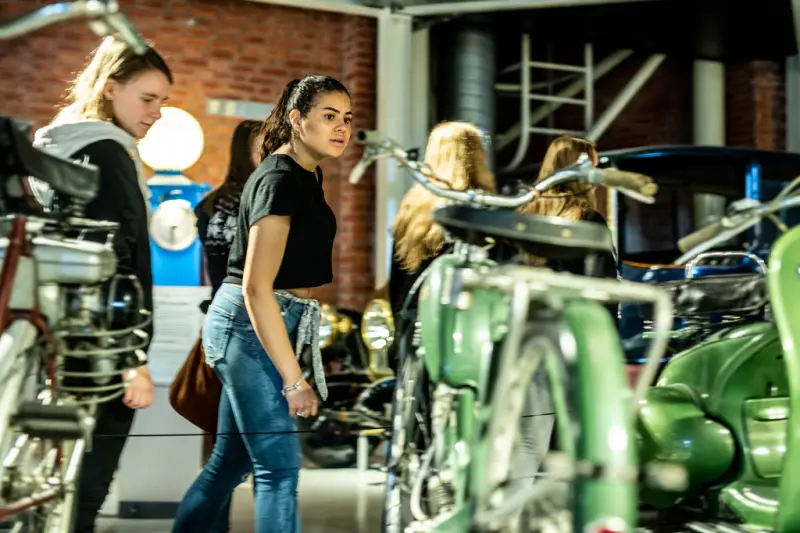 Omvisningen gir et innblikk i over 100 års teknologiutvikling og tilpasses elevenes alder og interesse. For 3.–4. trinn bruker vi ofte ekstra tid i Kommunikasjonshallen, hvor vi har sykler, biler, trikk, tog, luftballonger og fly. Hvilke utstillinger og gjenstander varierer, men normalt går vi gjennom 2-3 etasjer med utstillinger.