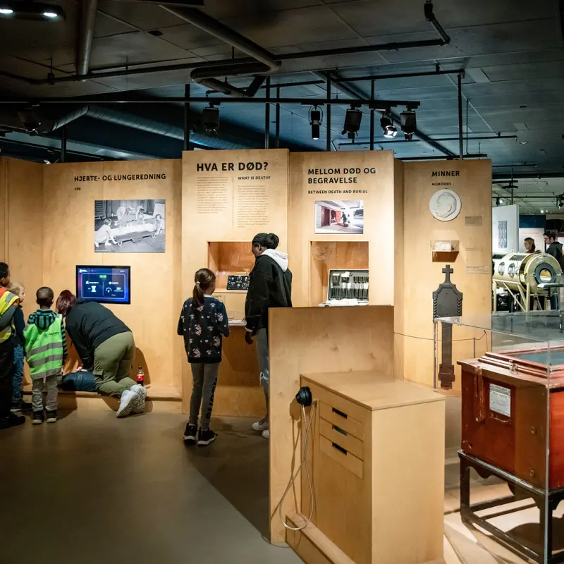 - Museumspedagogen møter gruppen i resepsjonen og vi går samlet til utstillingen Liv og død i Nasjonalt Medisinsk Museum.